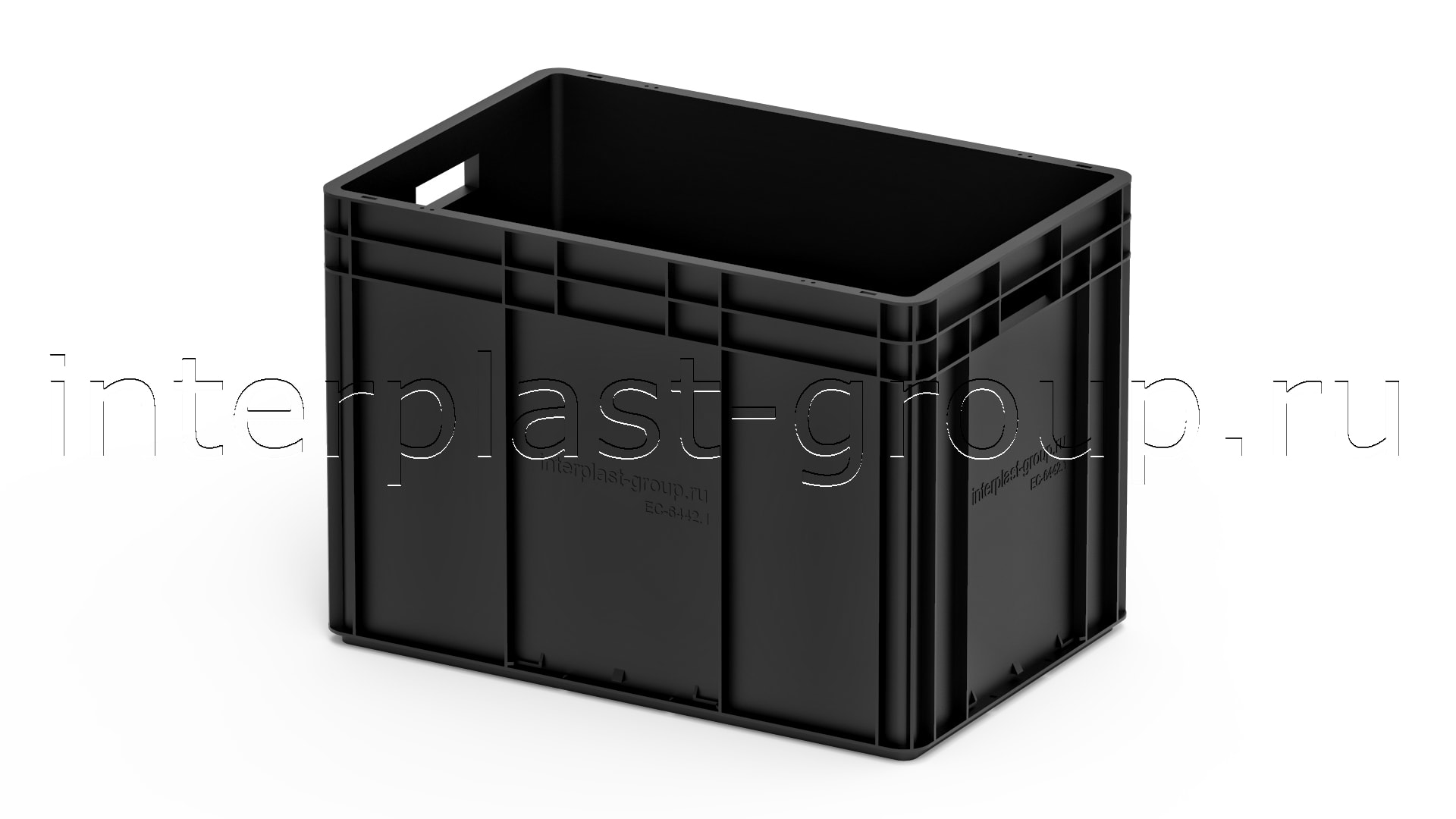 Евроконтейнер открытые ручки/сплошное дно (черный), 600x400x420 мм