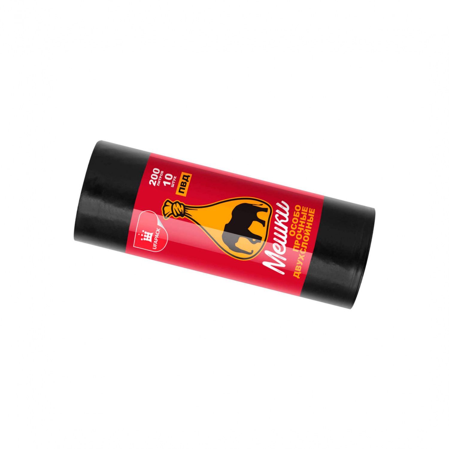 Мешки для мусора 200 л, черные, рулон 10 шт., ПВД, 36 мкм, 1300х900 мм, Уфа Пак, МВ3902 (МВ 200-10ч)
