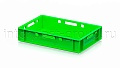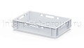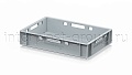 Ящик для мяса Е1 это первый по размеру в линейке мясных ящиков. Разработан специально для использования в мясной промышленности. Отлично штабелируется и собирается в единый сет со всеми ящиками серии. Изготовлен из первичного полиэтилена, и адаптирован для хранения в холодильных и морозильных камерах.
