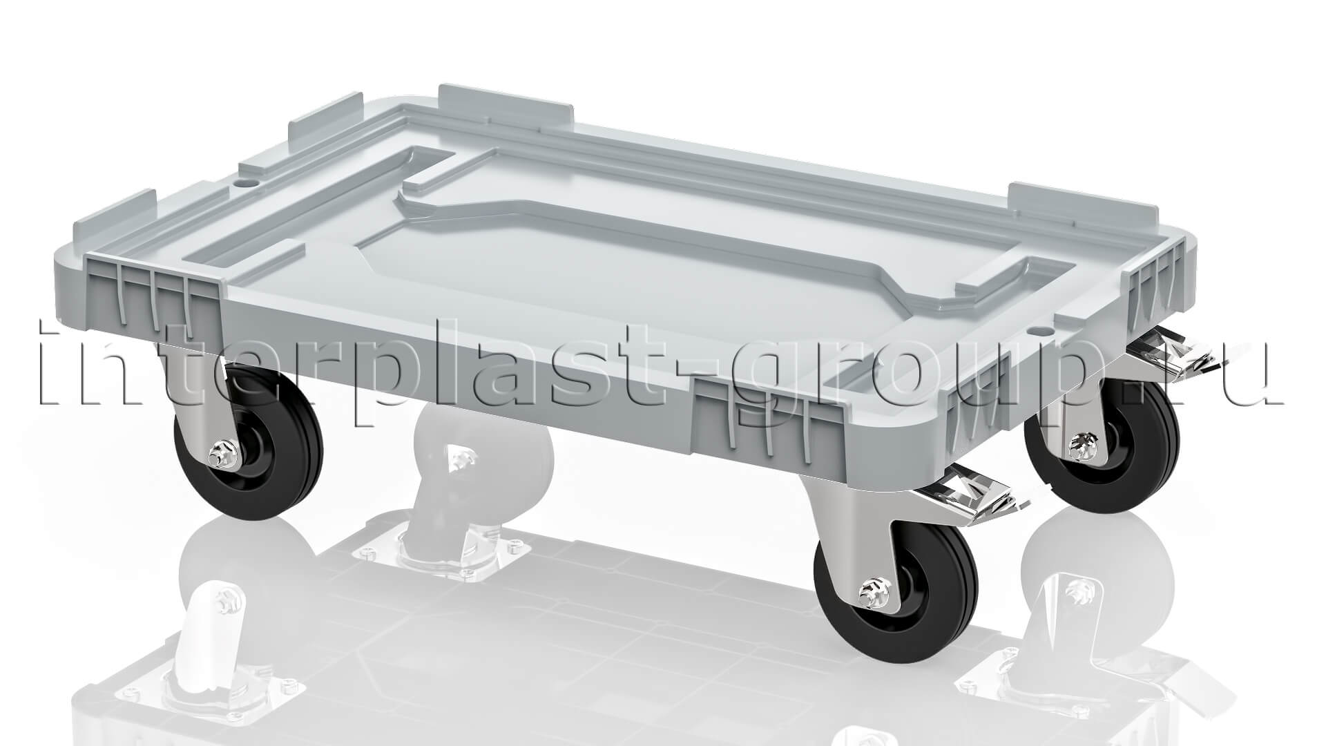 Тележка пластиковая сплошная 2 колеса с тормозом серая